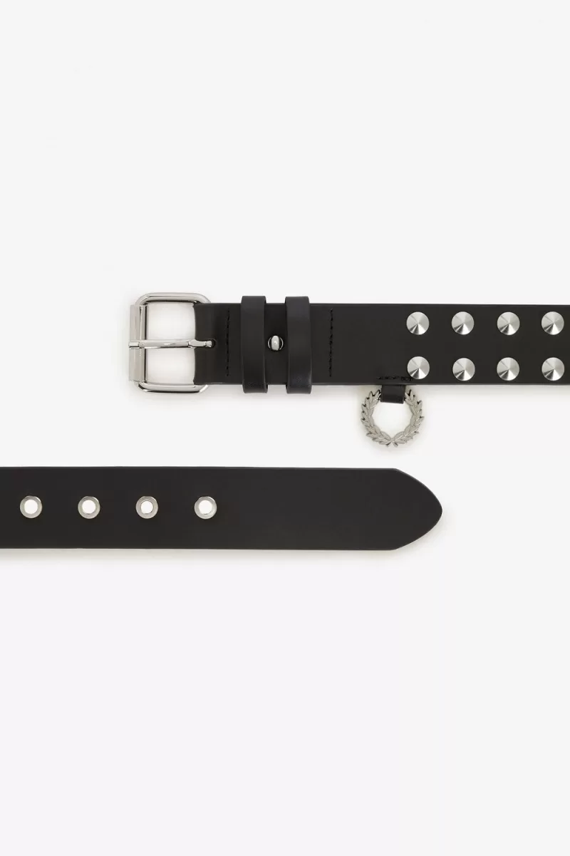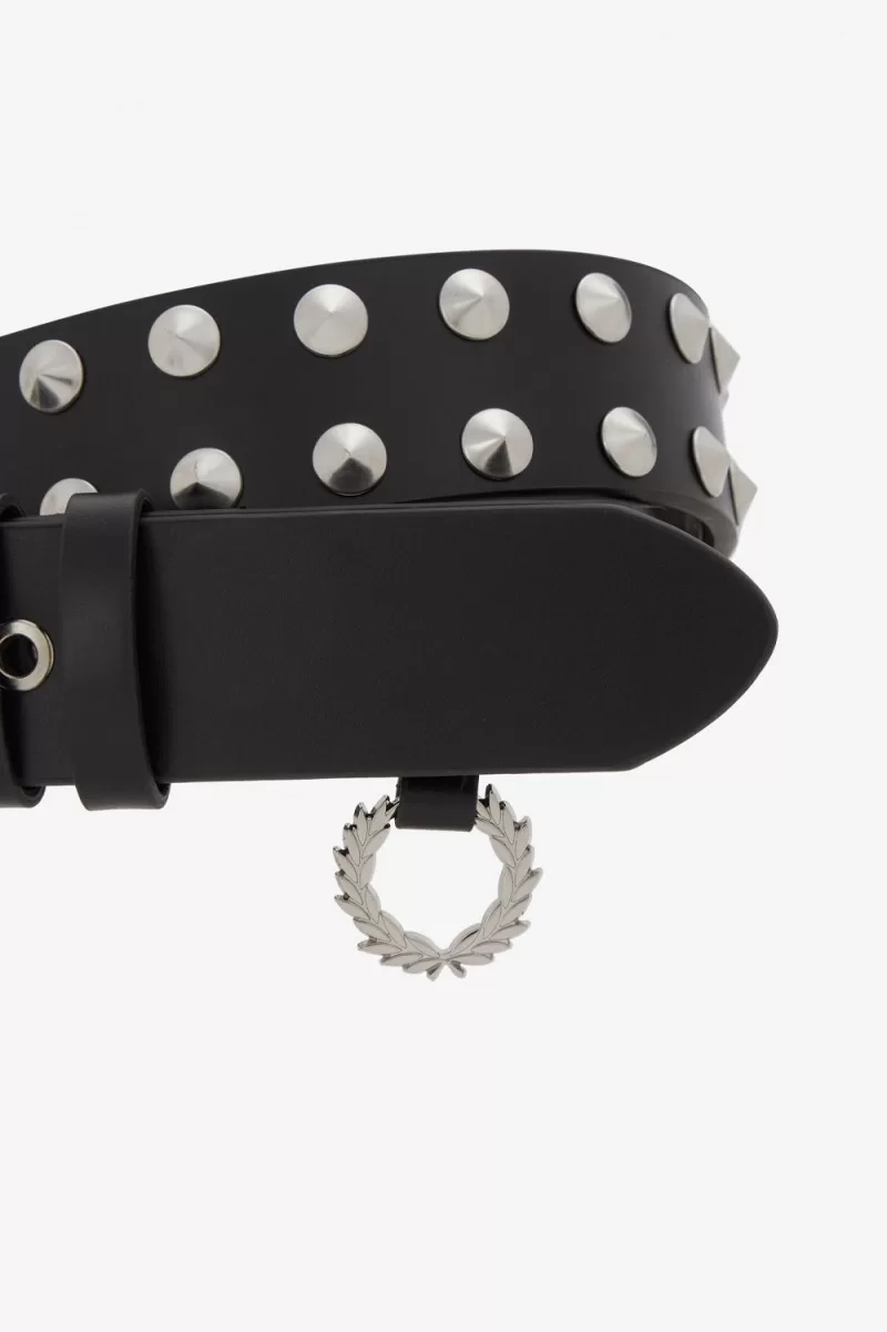 Fred Perry Studded Leather Men’s Belts Black QHDON0254