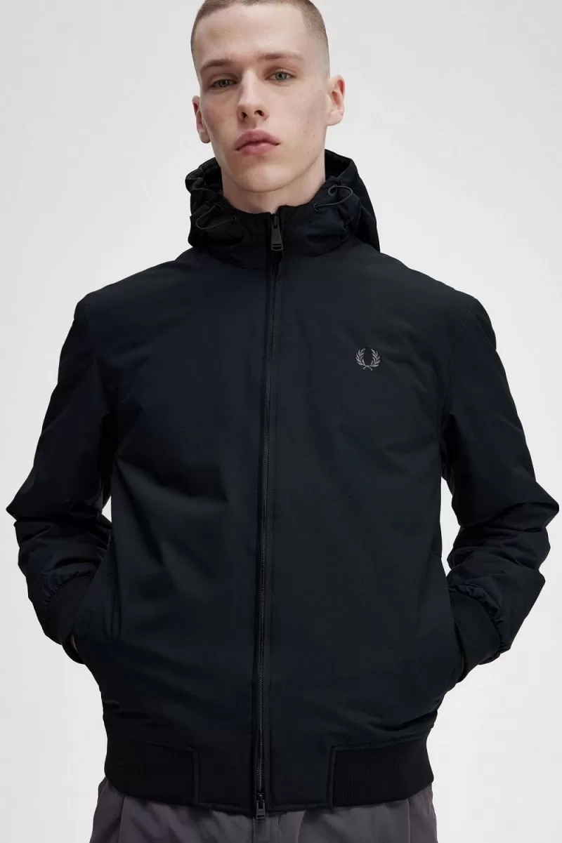 Fred Perry Padded Hooded Brentham Men’s Jackets Black Gunmetal JWNPS2461