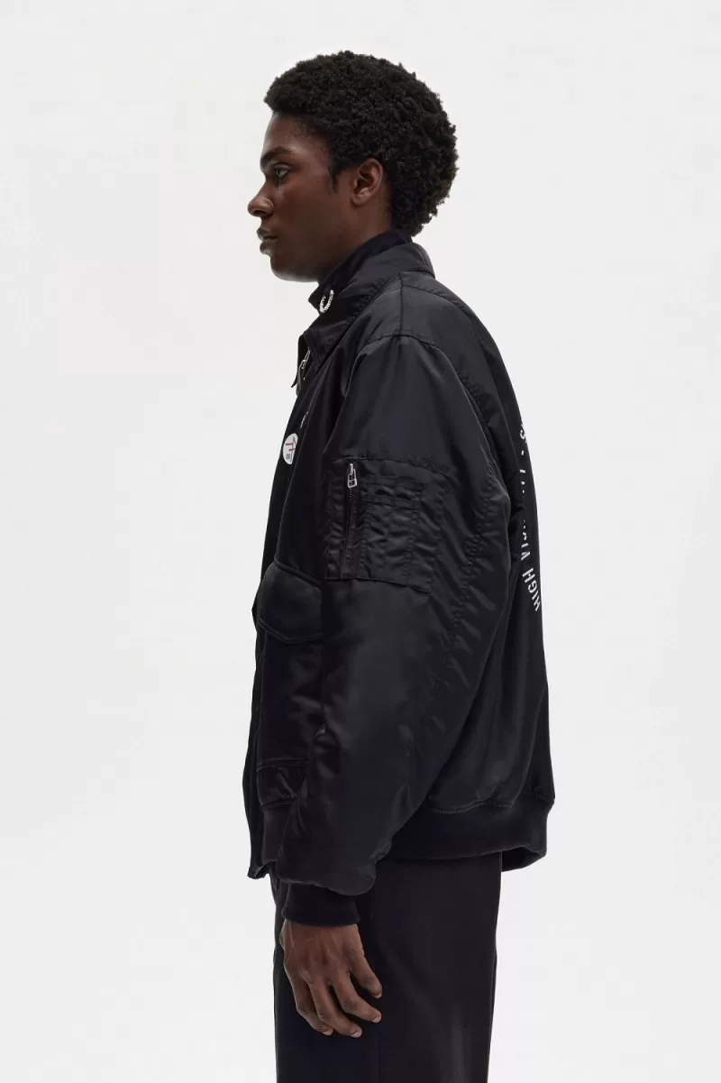 Home Men Clothing Jackets Fred Perry Printed Flight Men’s Jackets Black TCFGD3802