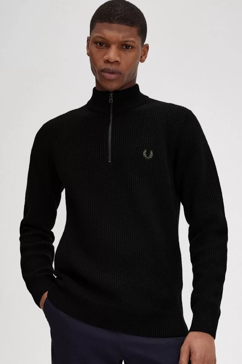 Fred Perry Textured Half Zip Men’s Jumper Black ISEBP8637