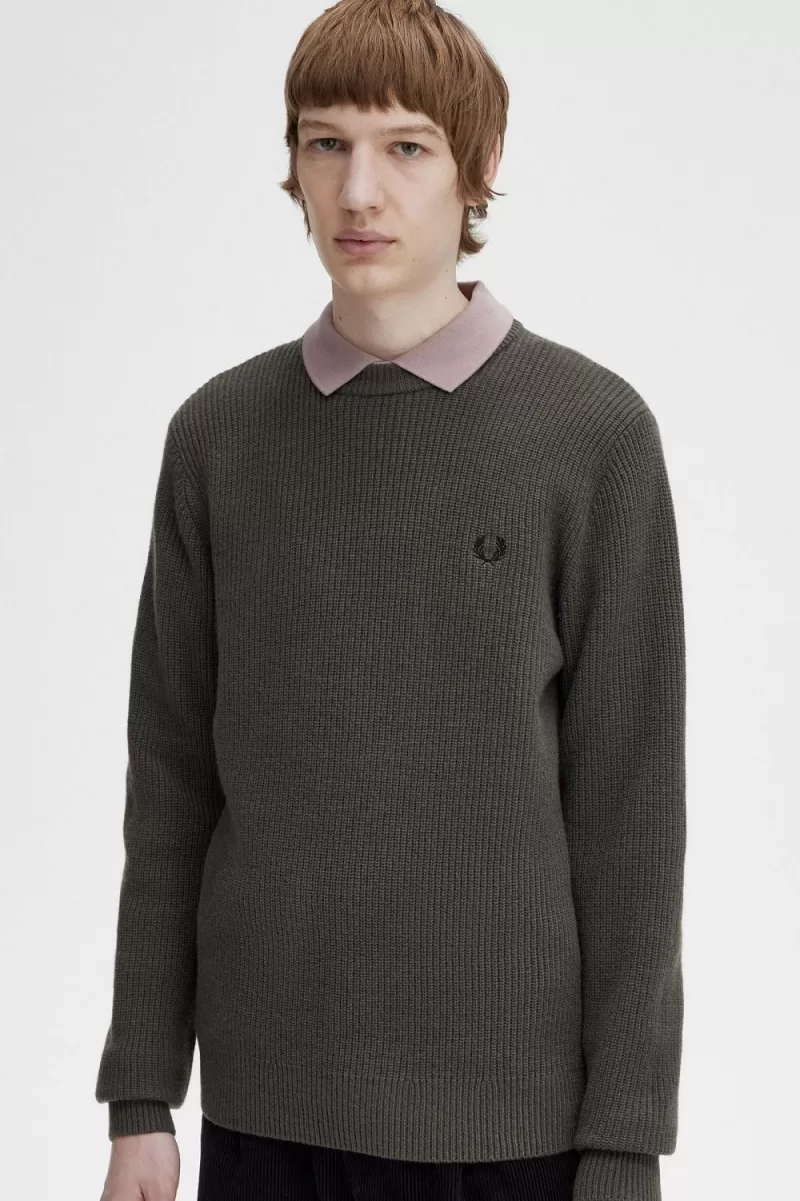 Home Men Clothing Jumper Fred Perry Textured Lambswool Men’s Jumper Field Green CENJW1796