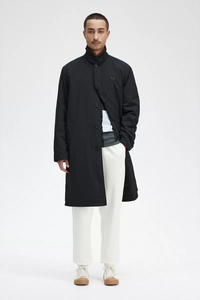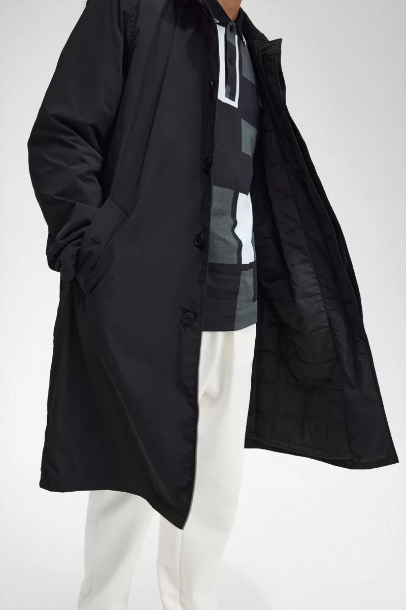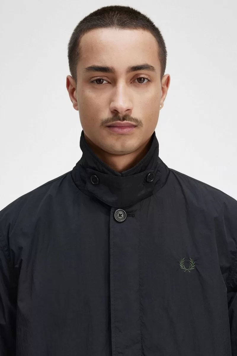 Fred Perry Button Through Mac Men’s Parka Black VNOIW9105