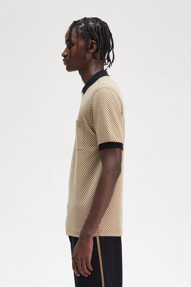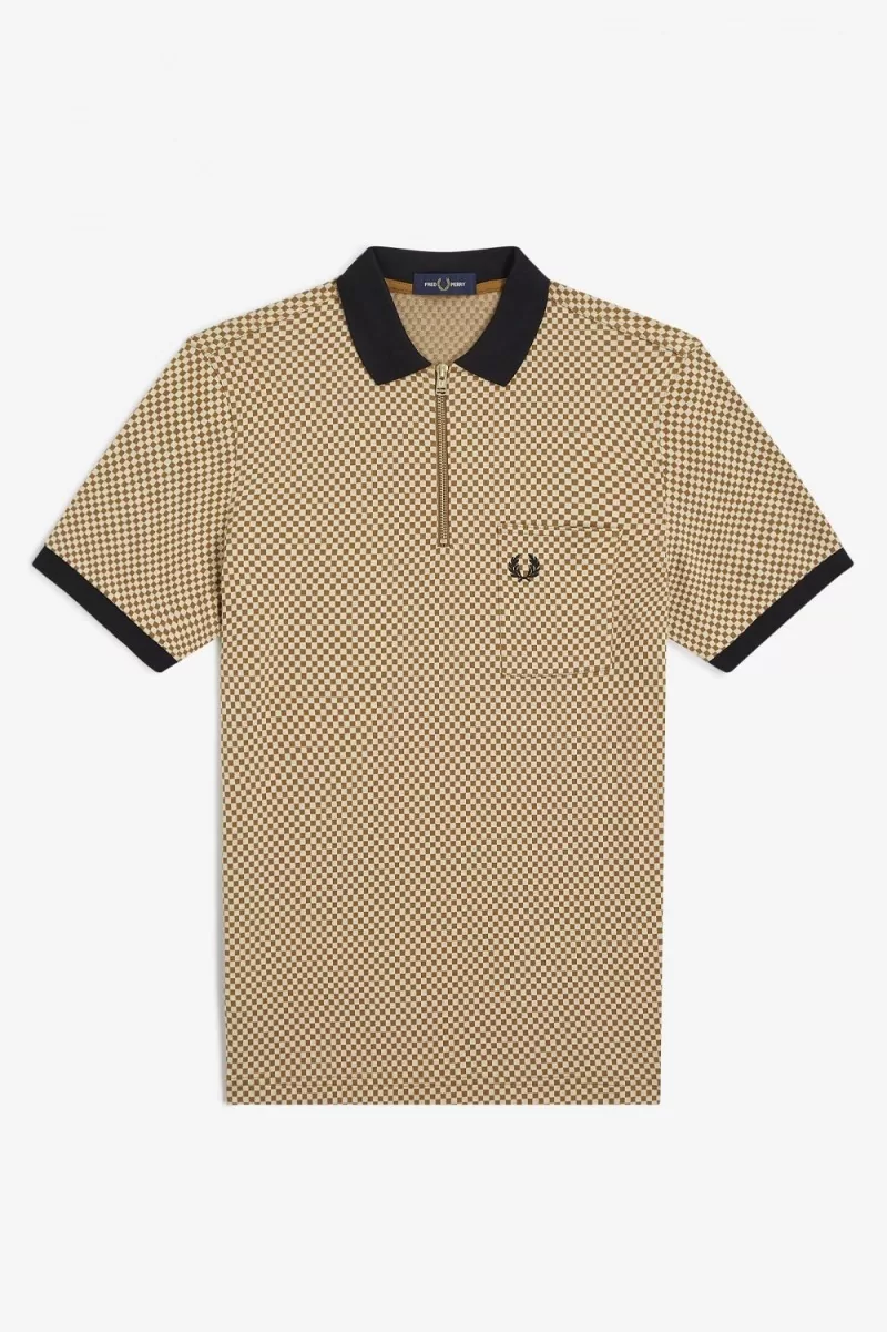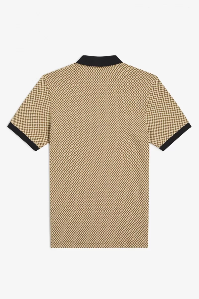 Fred Perry Micro Chequerboard Men’s Polo Shirt Oatmeal Dark Coffee YWLSX3950