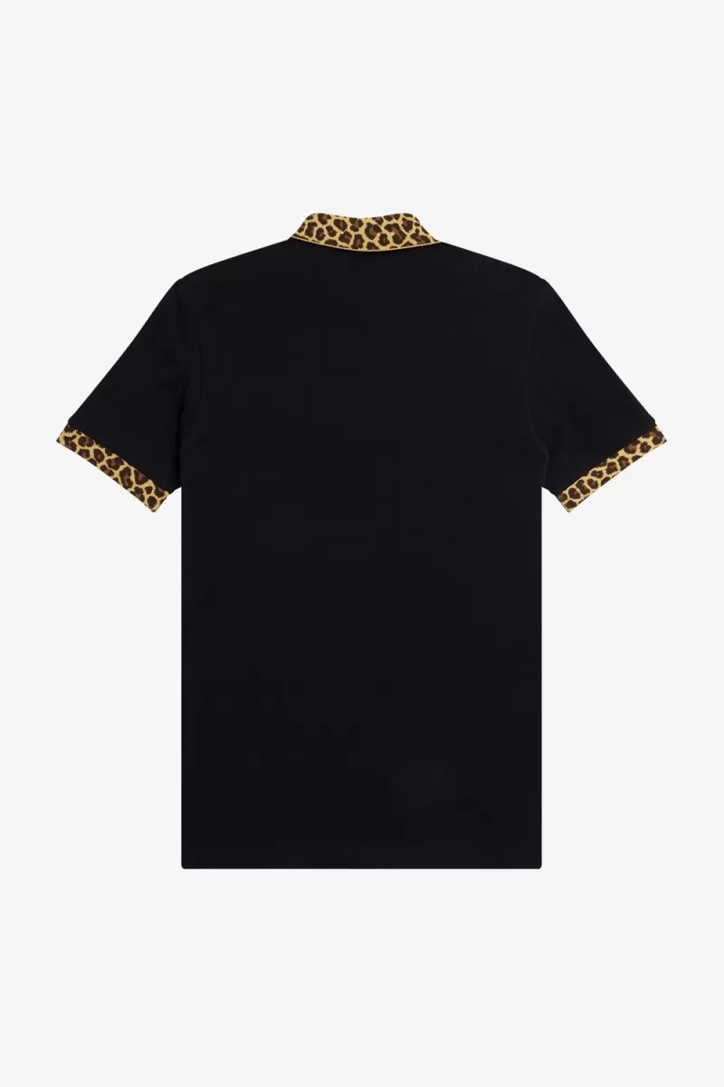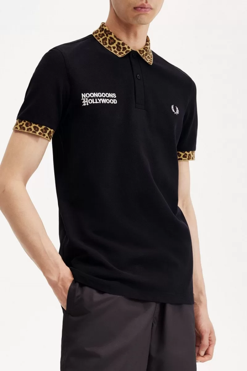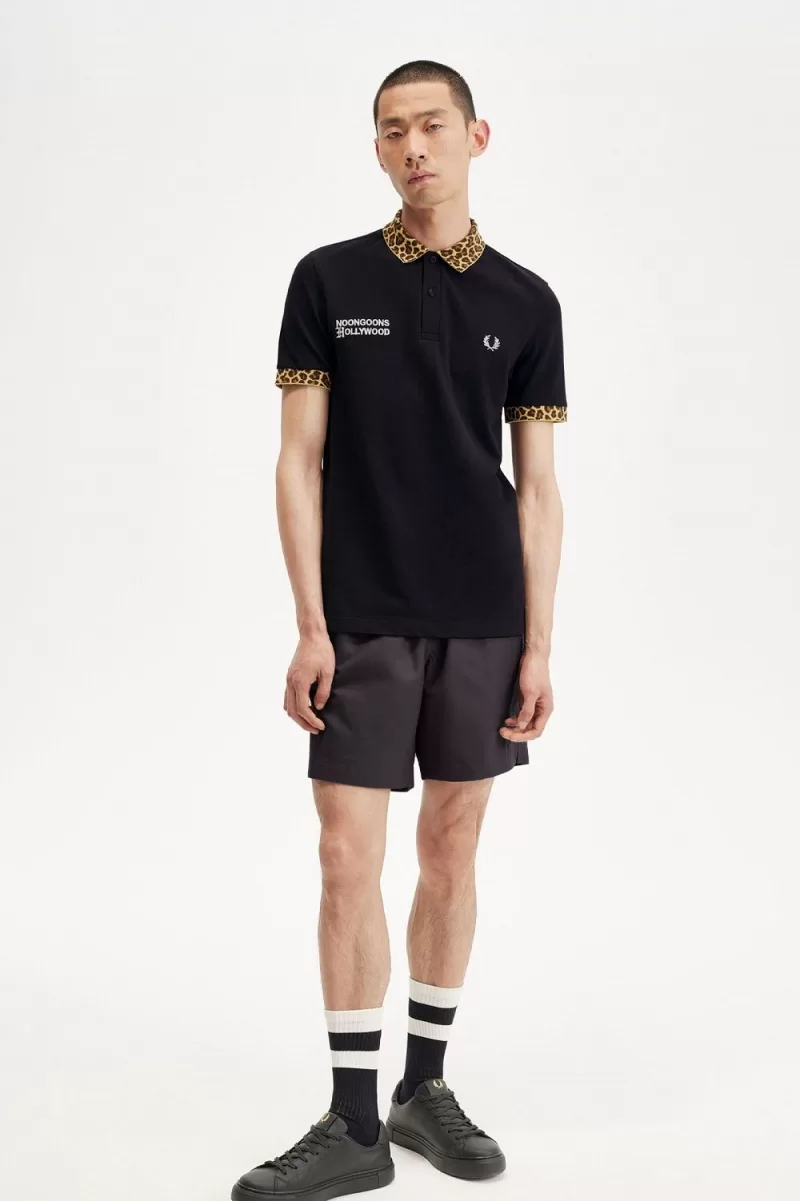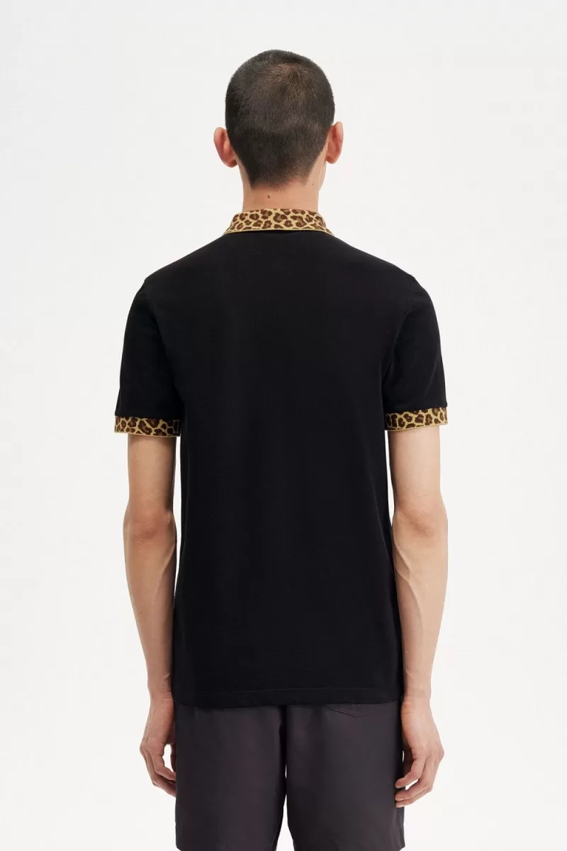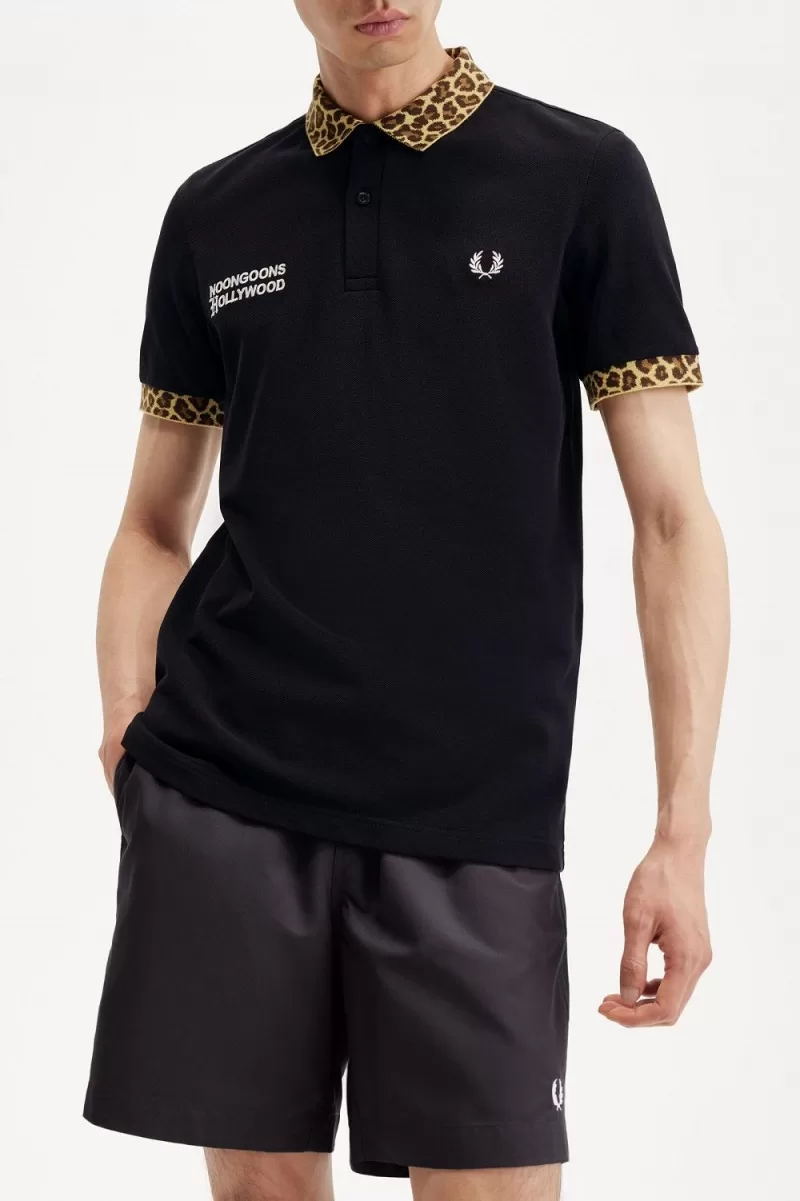 Fred Perry Noongoons Leopard Print Men’s Polo Shirt Black OIHUA3671