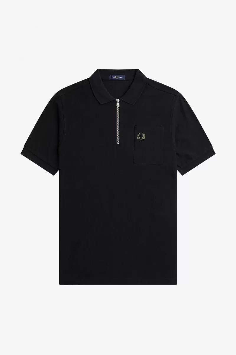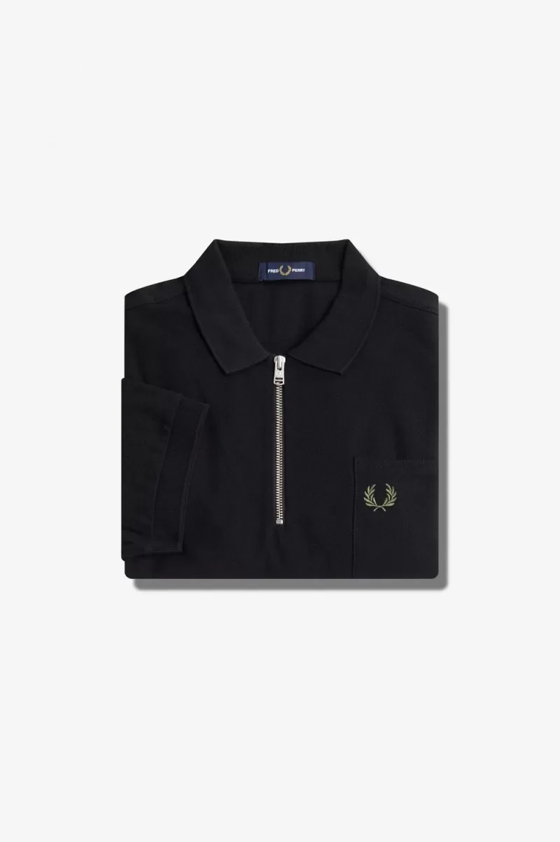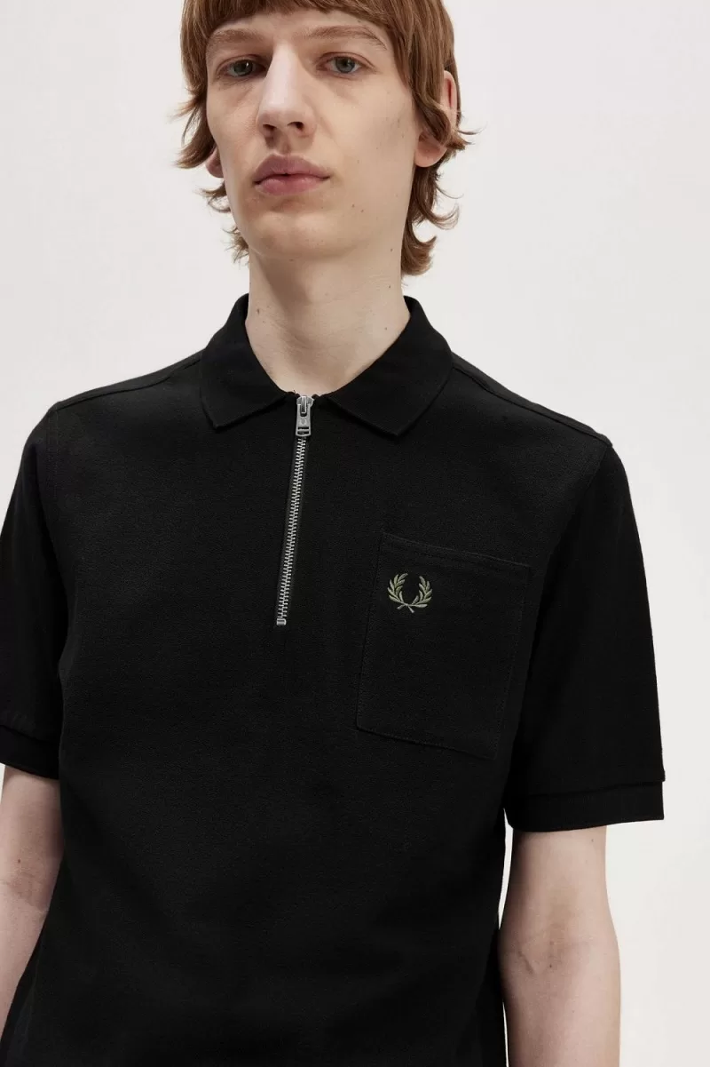 Fred Perry Textured Zip Neck Men’s Polo Shirt Black KTOBS8074