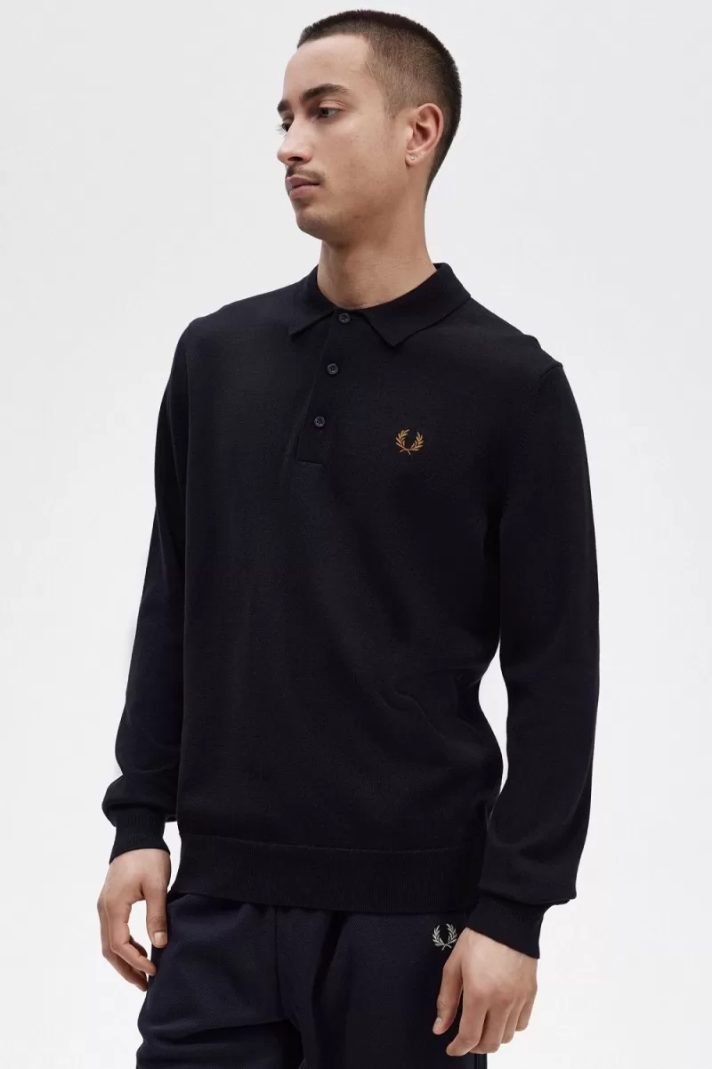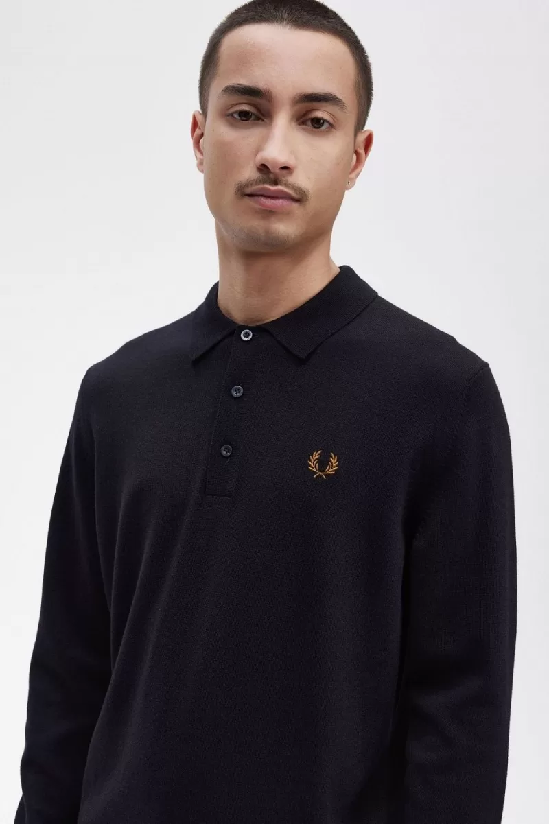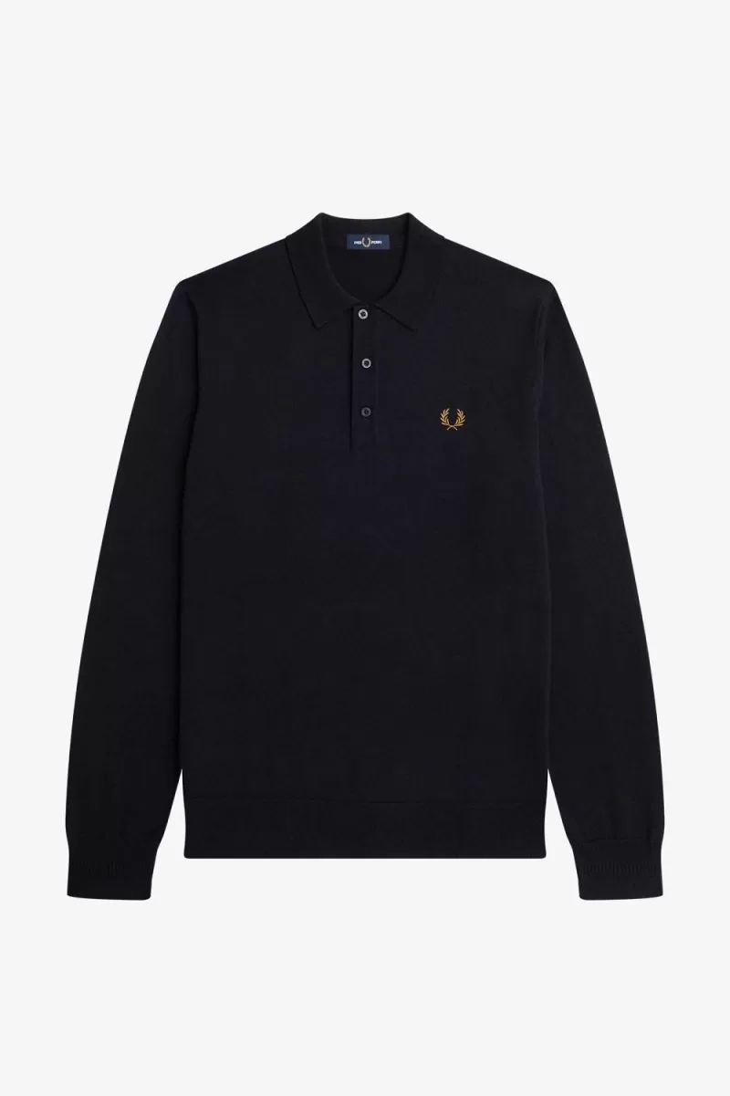 Fred Perry Long Sleeve Knitted Men’s Shirt Navy VCFQY3284