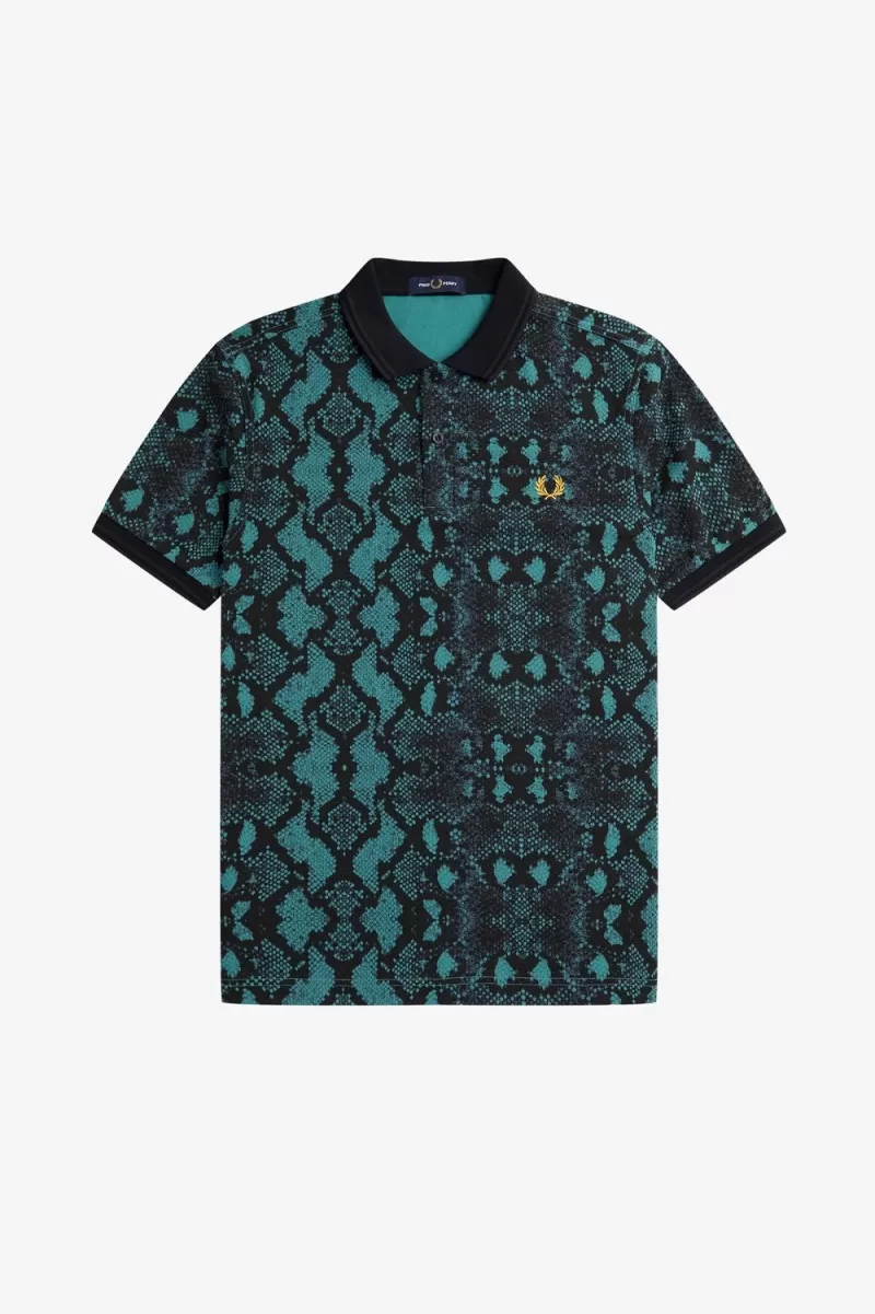 Fred Perry Snake Print Men’s Shirt Deep Mint CZIDJ2815