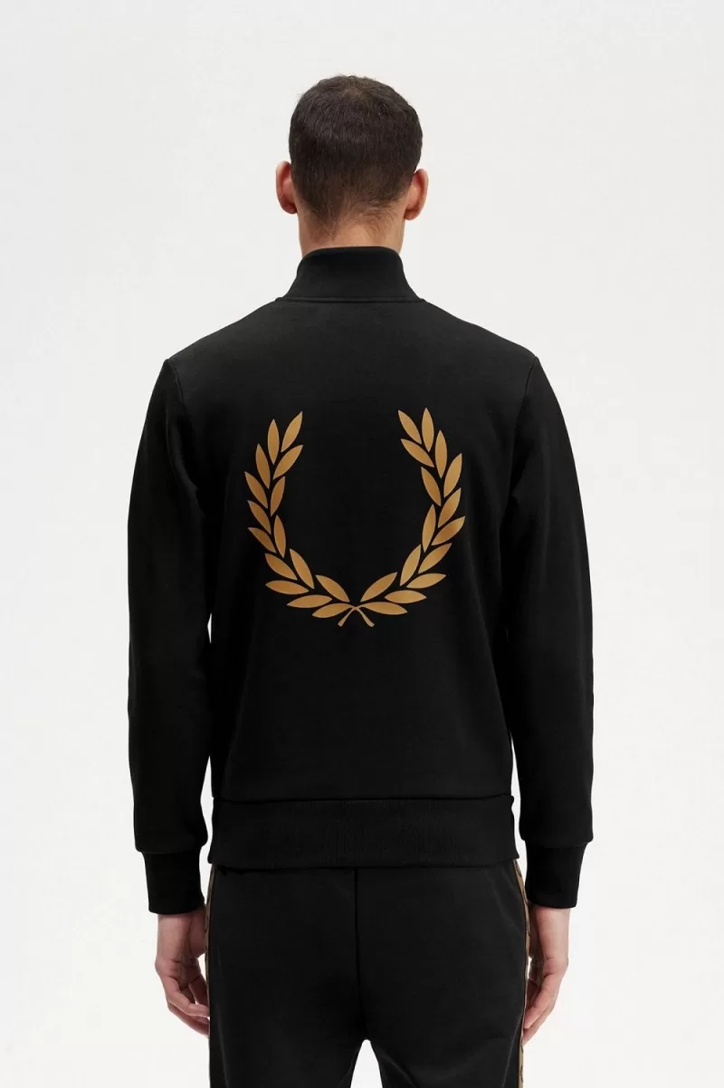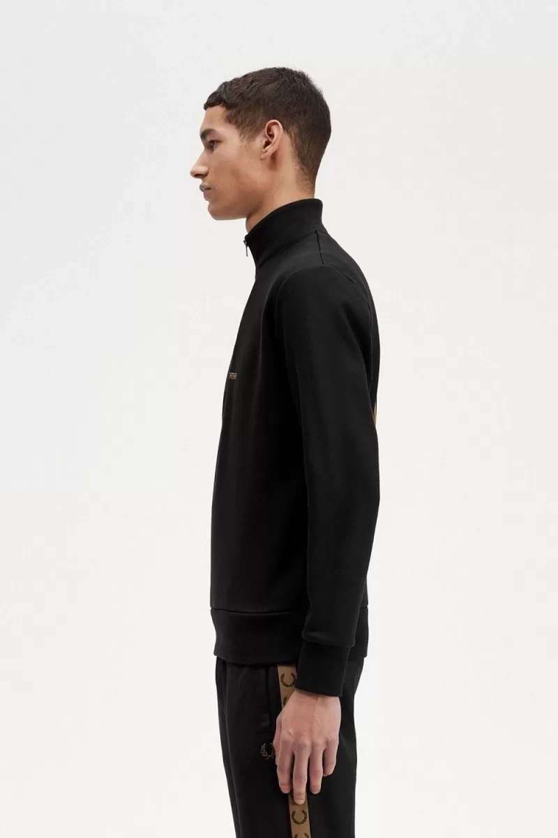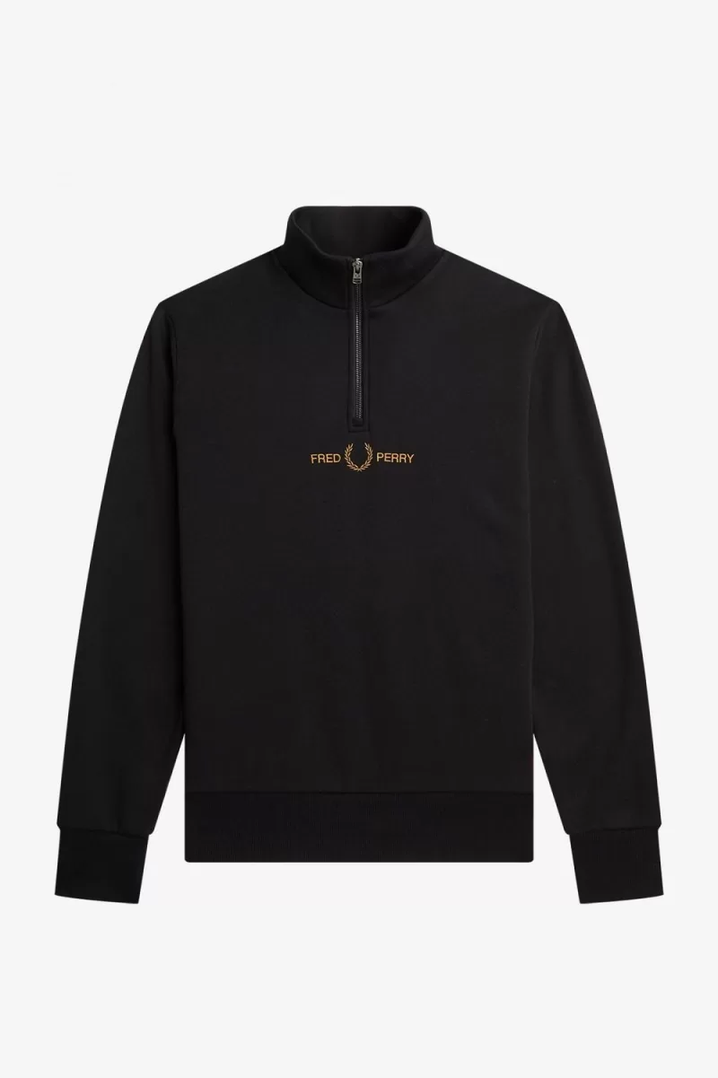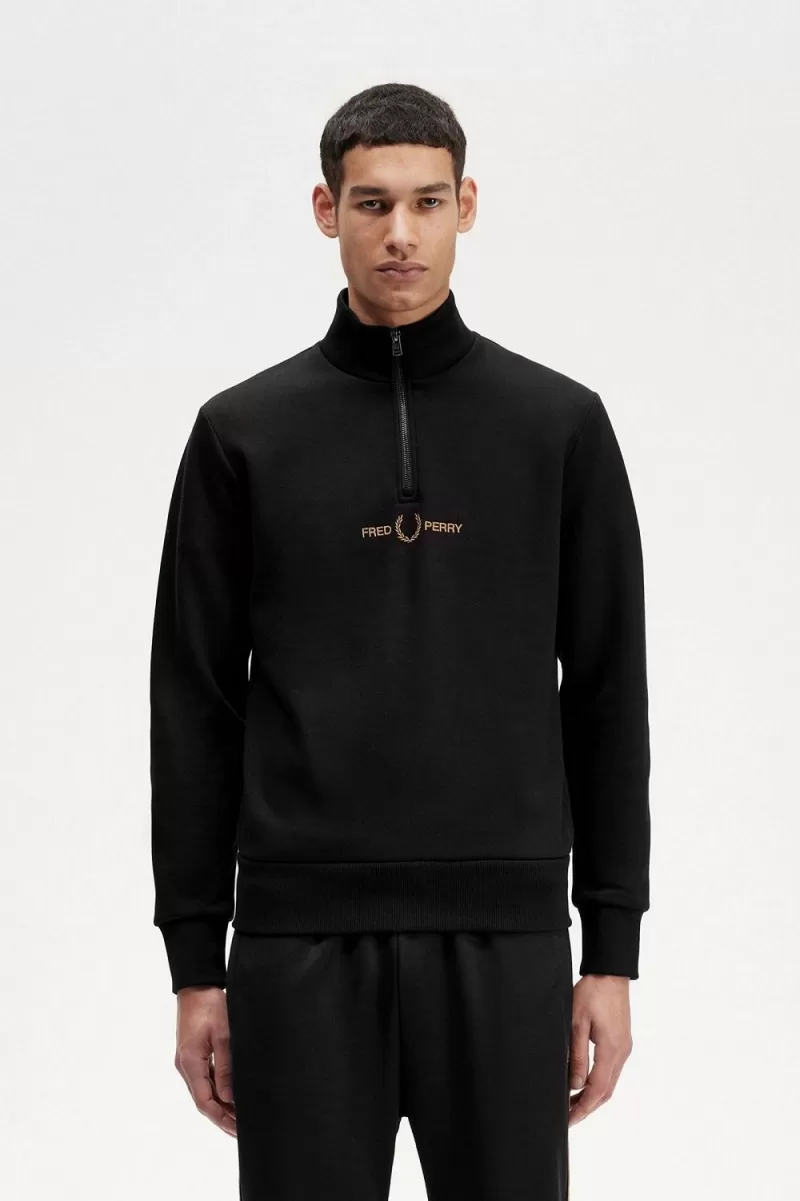 Fred Perry Double Graphic Half Zip Men’s Sweatshirts Black ZUOBY5624