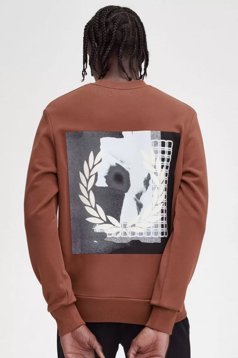 Fred Perry Rave Graphic Men’s Sweatshirts Whisky Brown NRZLY8435