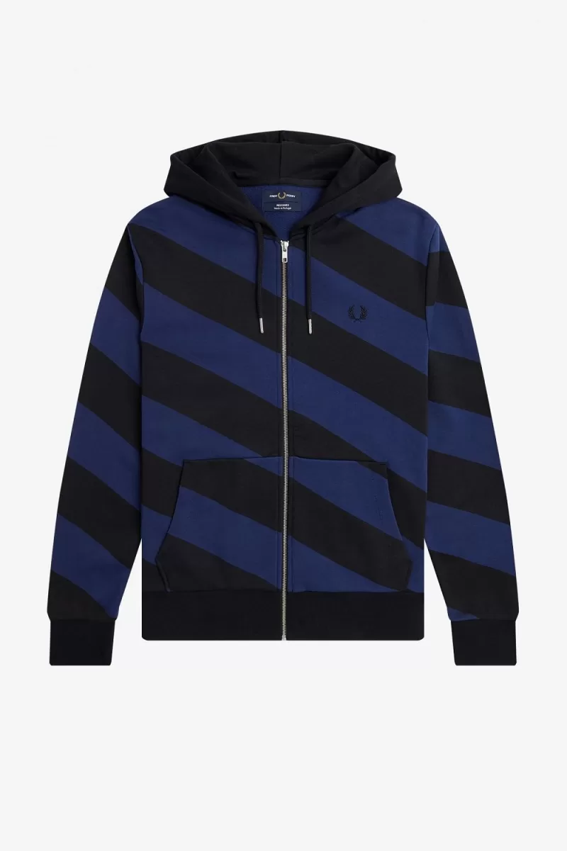 Fred Perry Striped Zip-Through Hooded Men’s Sweatshirts Black QTNHF9735