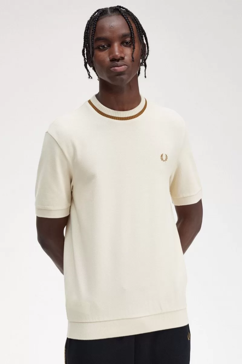 Fred Perry Crew Neck Piqué Men’s T-Shirt Oatmeal LFINK7468