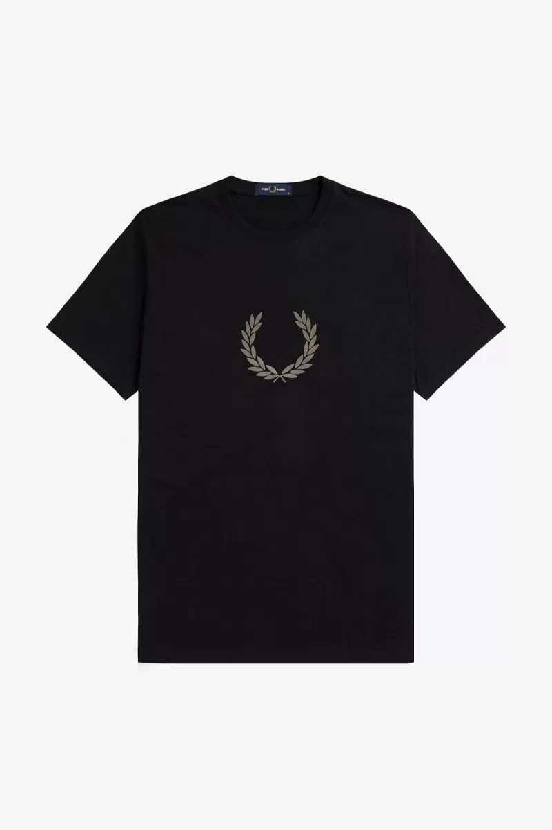 Fred Perry Flocked Laurel Wreath Men’s T-Shirt Black Warm Grey GFPHV8769