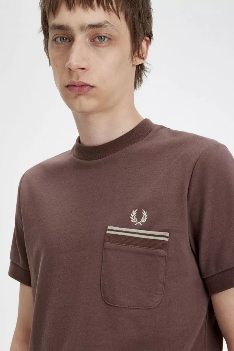 Fred Perry Loopback Jersey Pocket Men’s T-Shirt Dark Red CEFUH6290