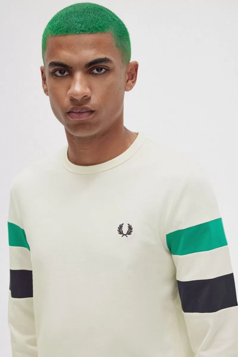 Fred Perry Panelled Sleeve Long Sleeve Men’s T-Shirt Beige JNARP1234