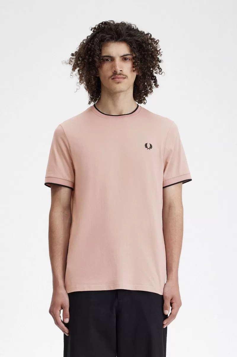 Fred Perry Twin Tipped Men’s T-Shirt Dark Pink Dusty Rose Black DLOXG7102