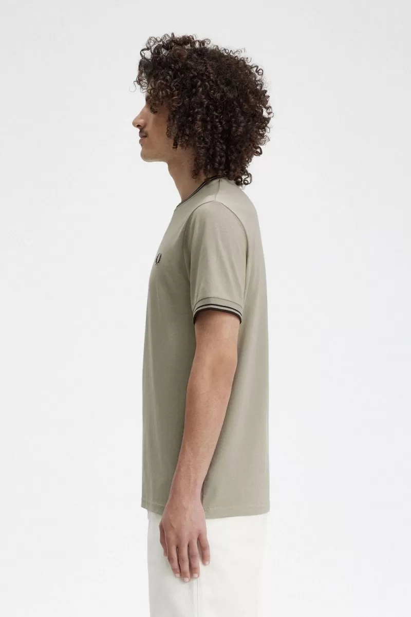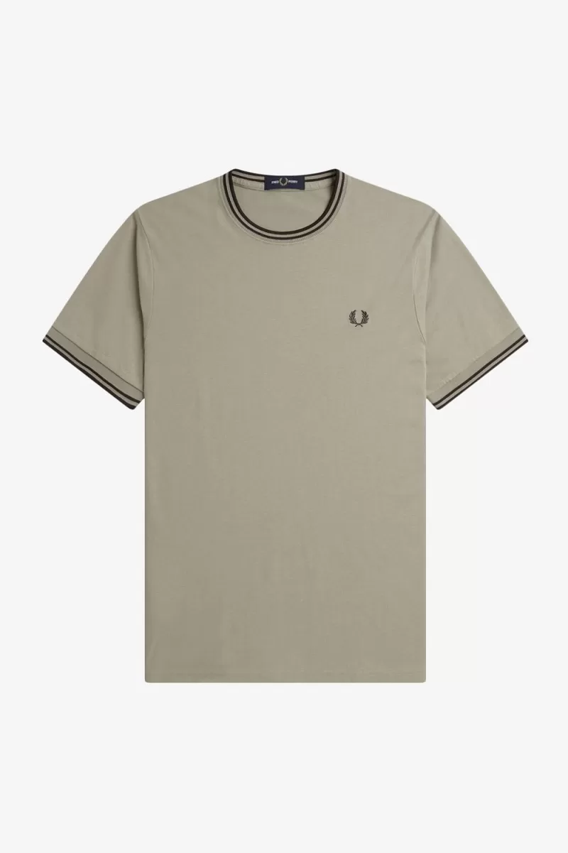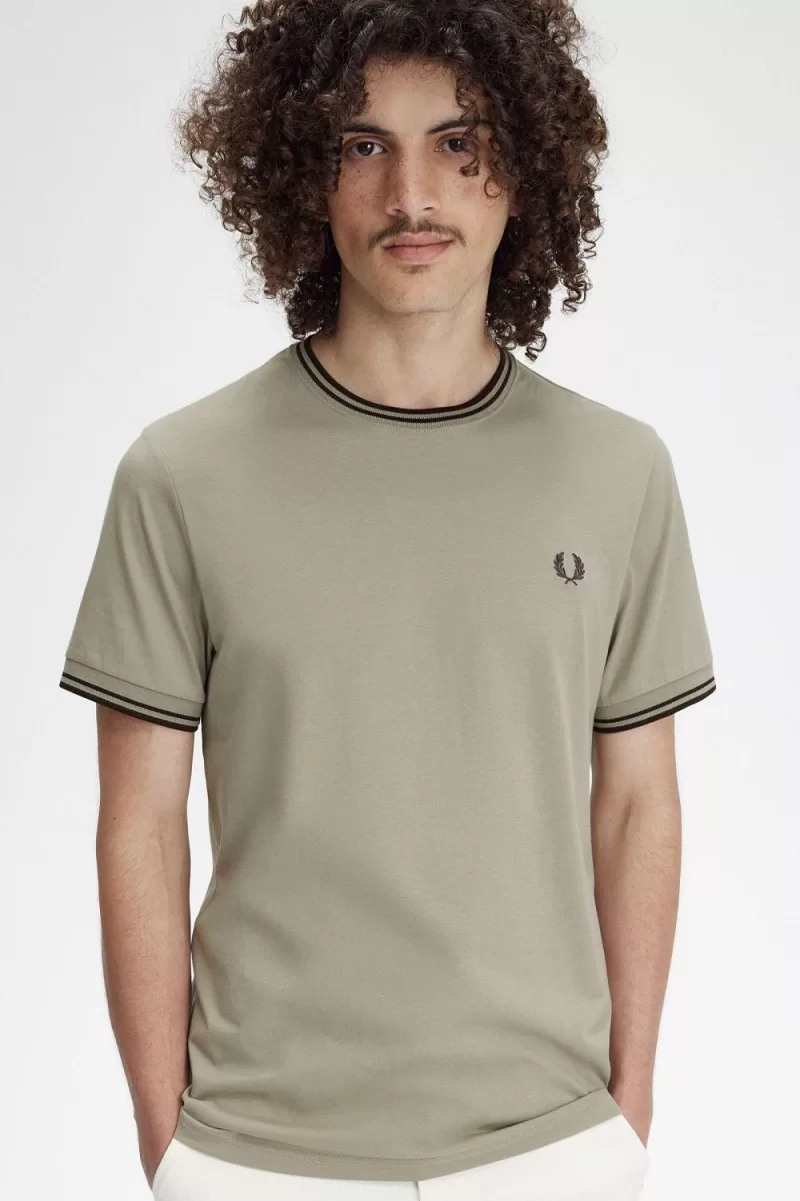 Fred Perry Twin Tipped Men’s T-Shirt Warm Grey Dark Red ZHVNP4038