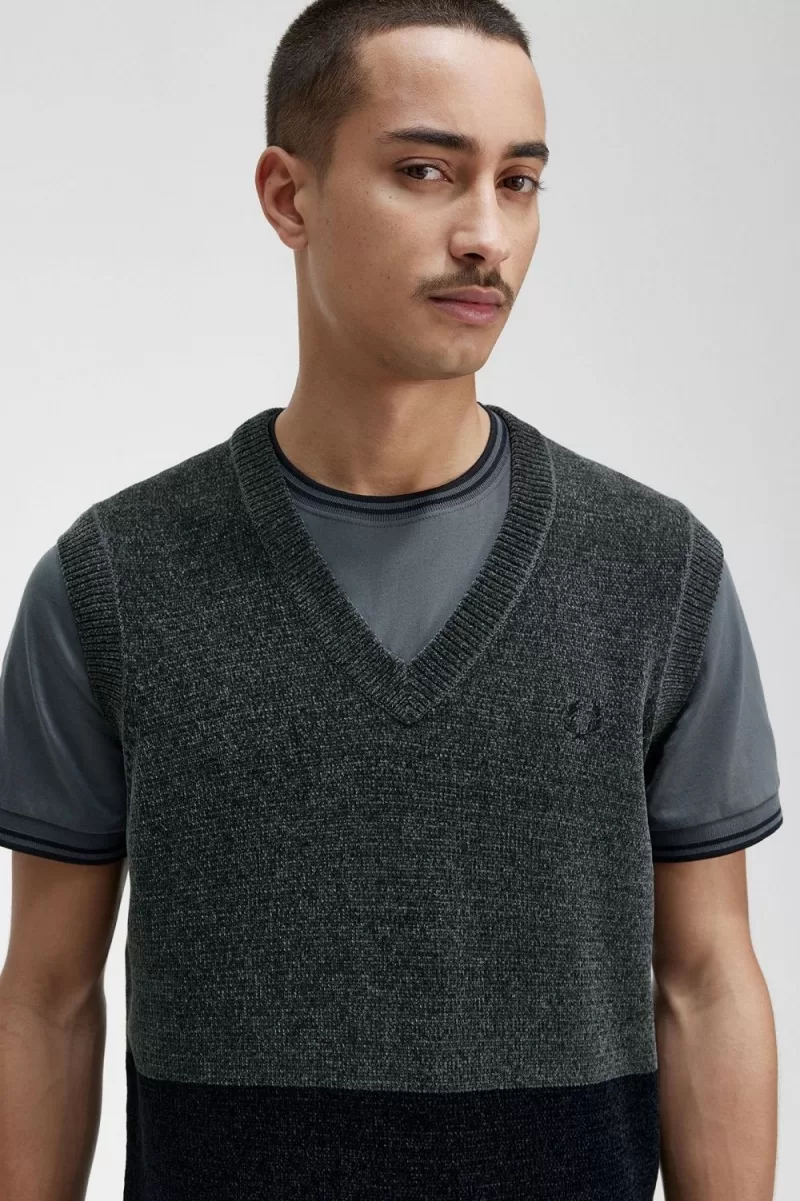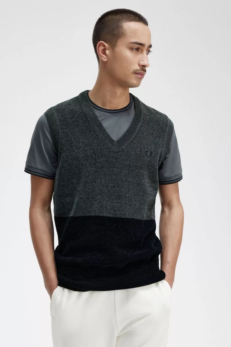 Fred Perry Colour Block Chenille Men’s Tanks Field Green FBZXM3615