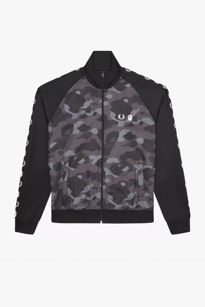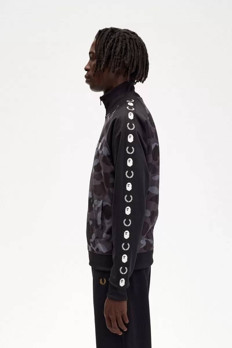 Home Men Clothing Track Jackets Fred Perry Camouflage Panel Men’s Track Jackets Black CRISV3712