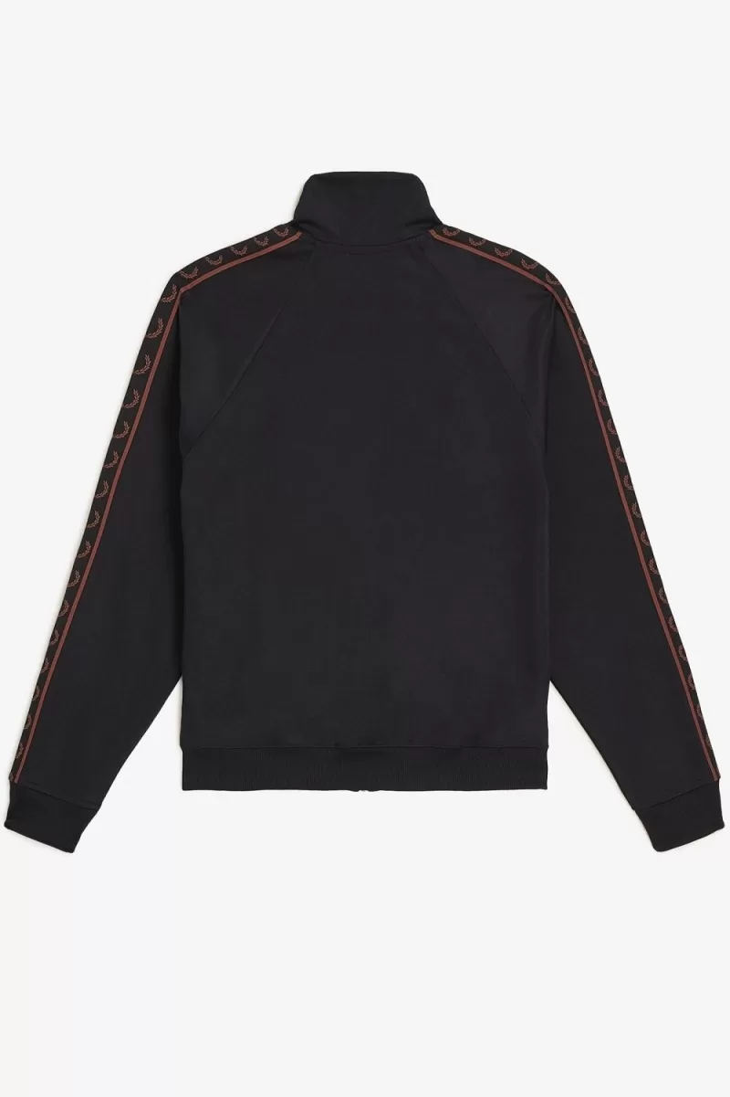 Fred Perry Contrast Tape Men’s Track Jackets Black Whisky Brown PHWVQ7639