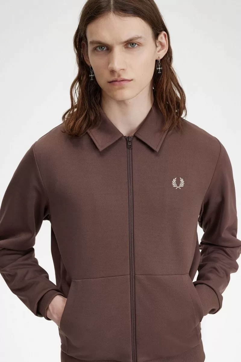 Fred Perry Tape Detail Collared Men’s Track Jackets Dark Red URYKF9037