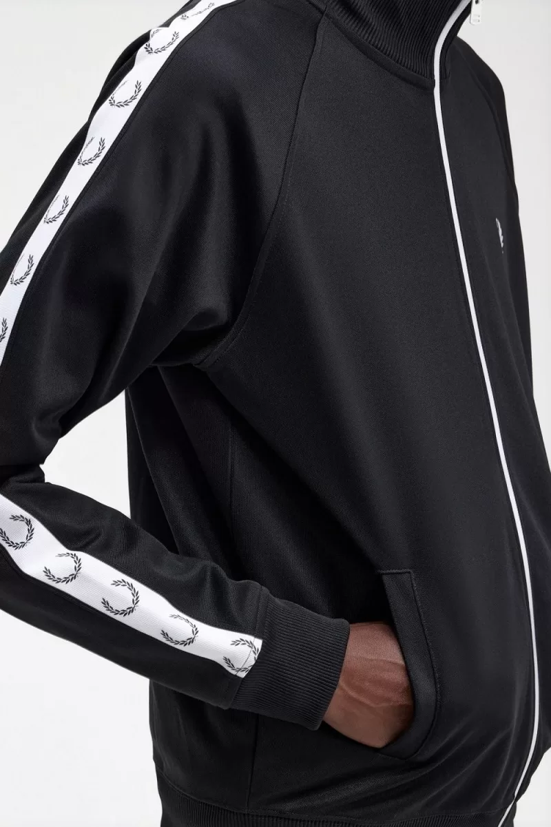 Home Men Clothing Track Jackets Fred Perry Taped Men’s Track Jackets Black OQCTI0321