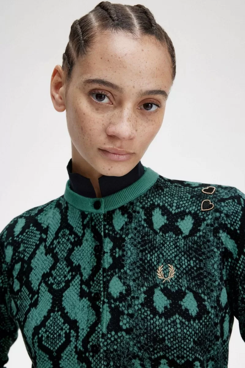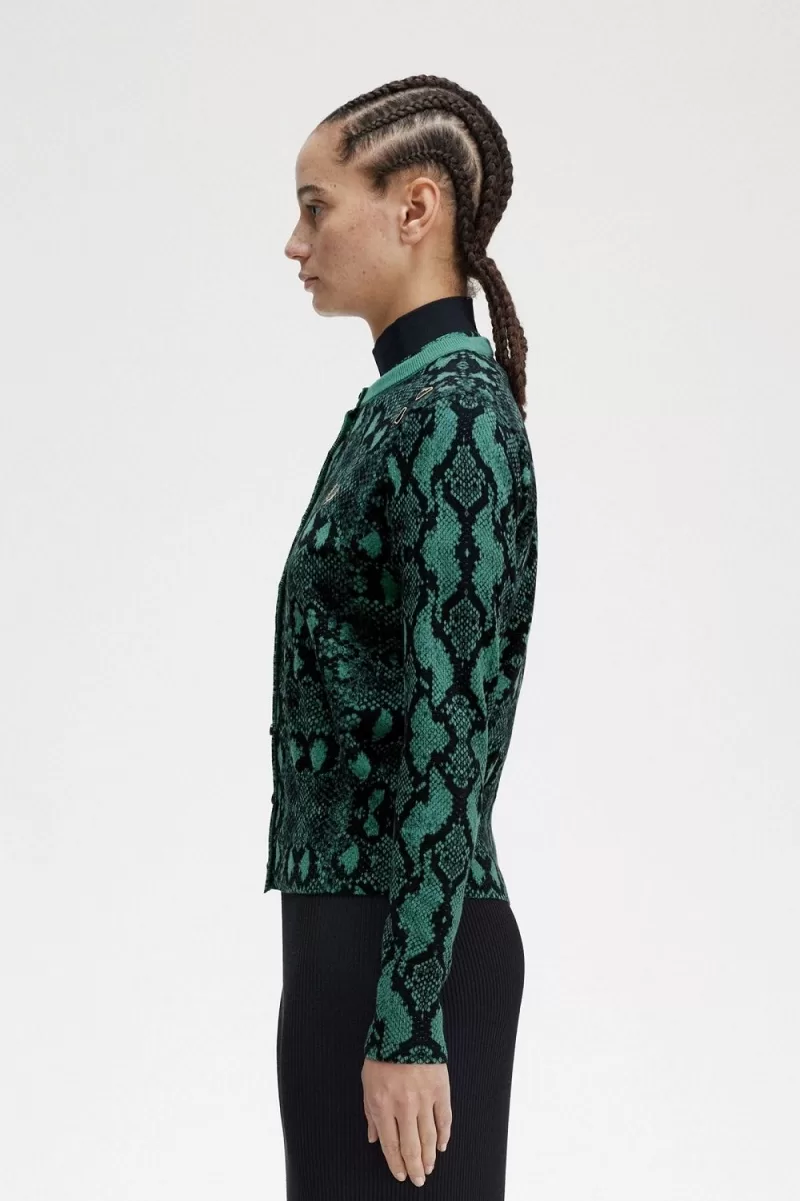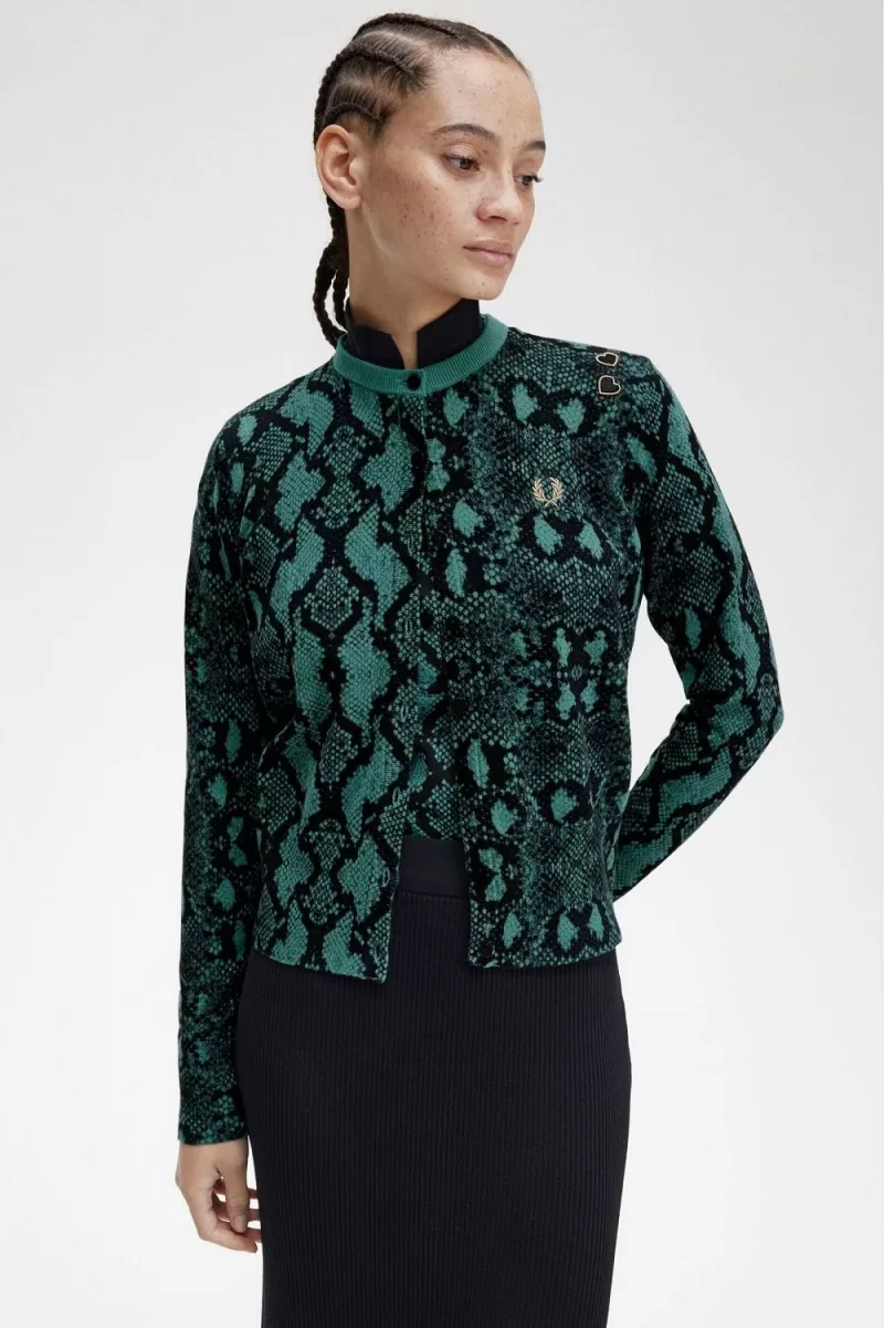 Fred Perry Snake Print Women’s Cardigan Deep Mint ZTVUC3149