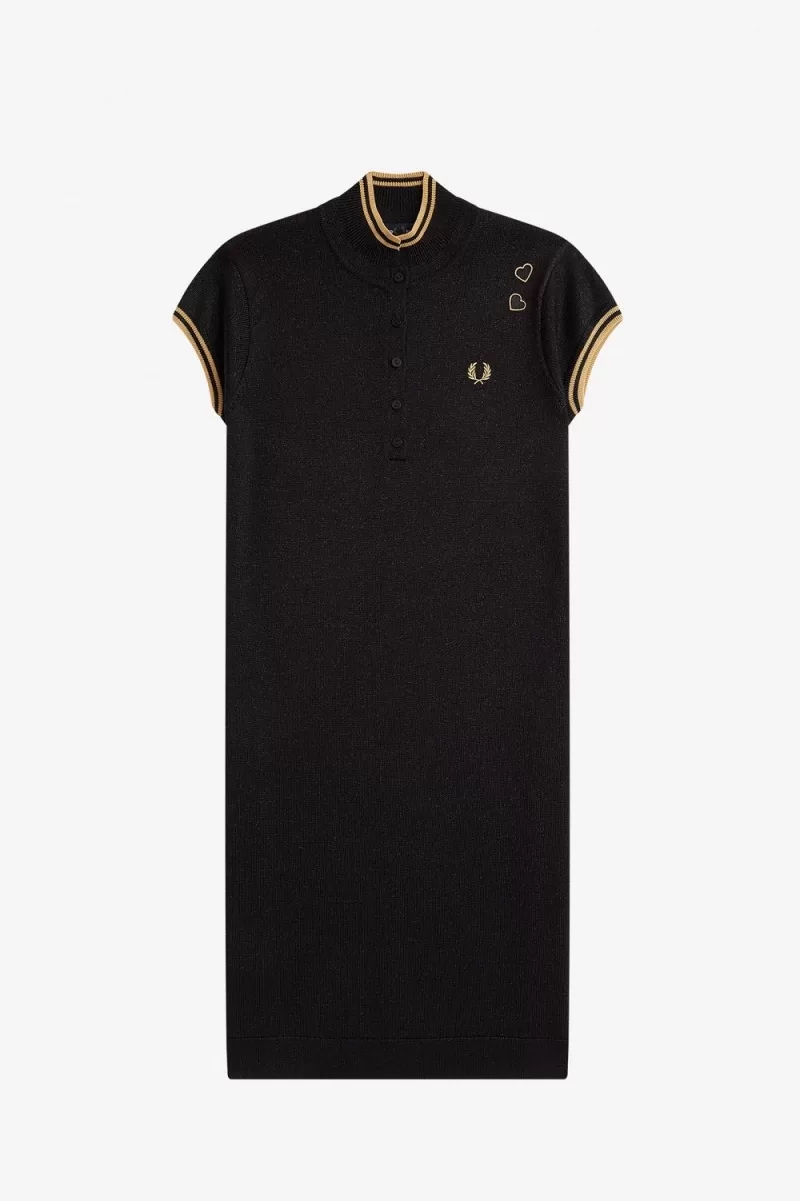 Fred Perry Metallic Knitted Women’s Dress Black QWFSP1394