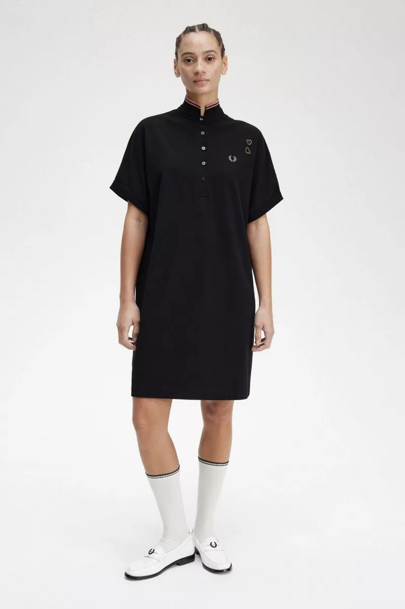 Fred Perry Tipped Piqué Shirt Women’s Dress Black JDGWF1382