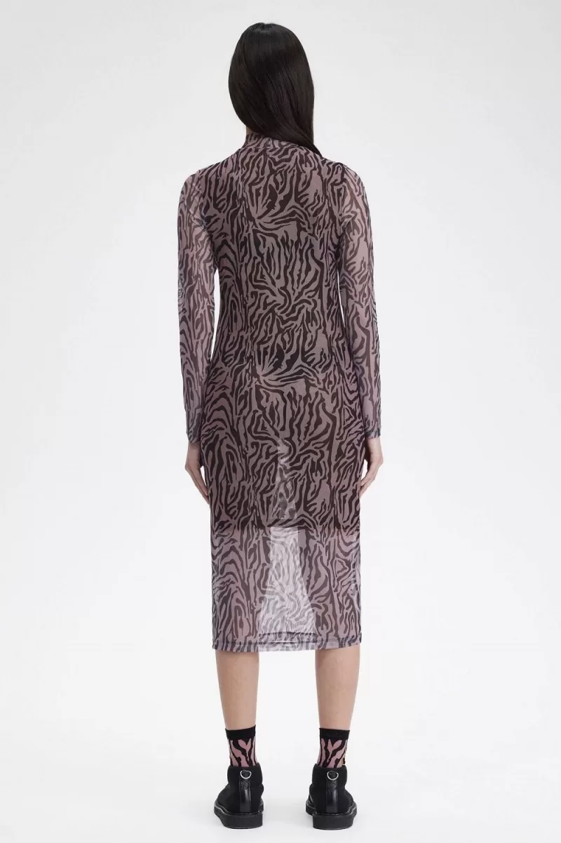 Fred Perry Zebra Print Mesh Women’s Dress Dusty Rose Pink EGLJP9784