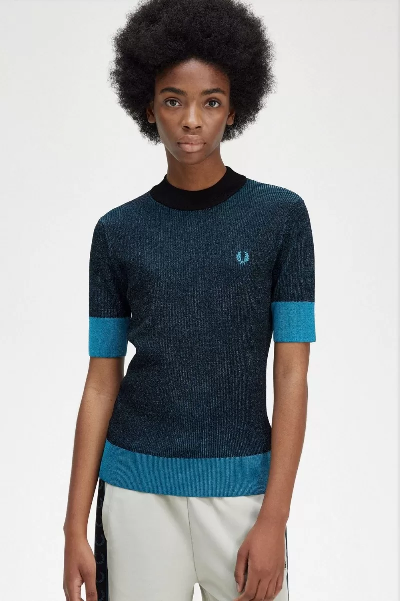 Fred Perry Contrast Rib Short Sleeve Women’s Jumper Black XHFQO7019