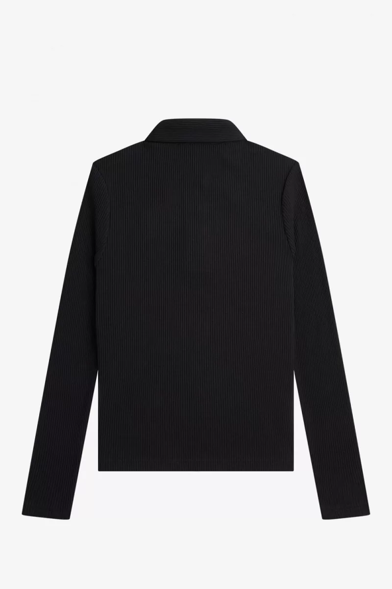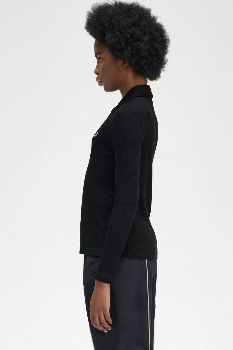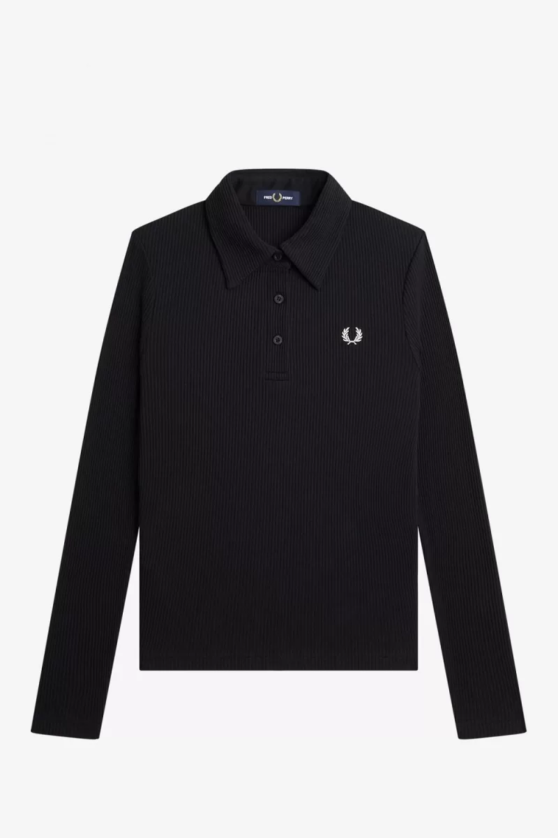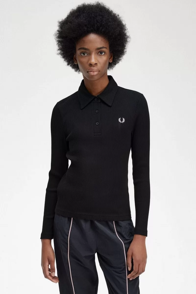 Fred Perry Long Sleeve Ribbed Women’s Polo Shirt Black IXAGH0539