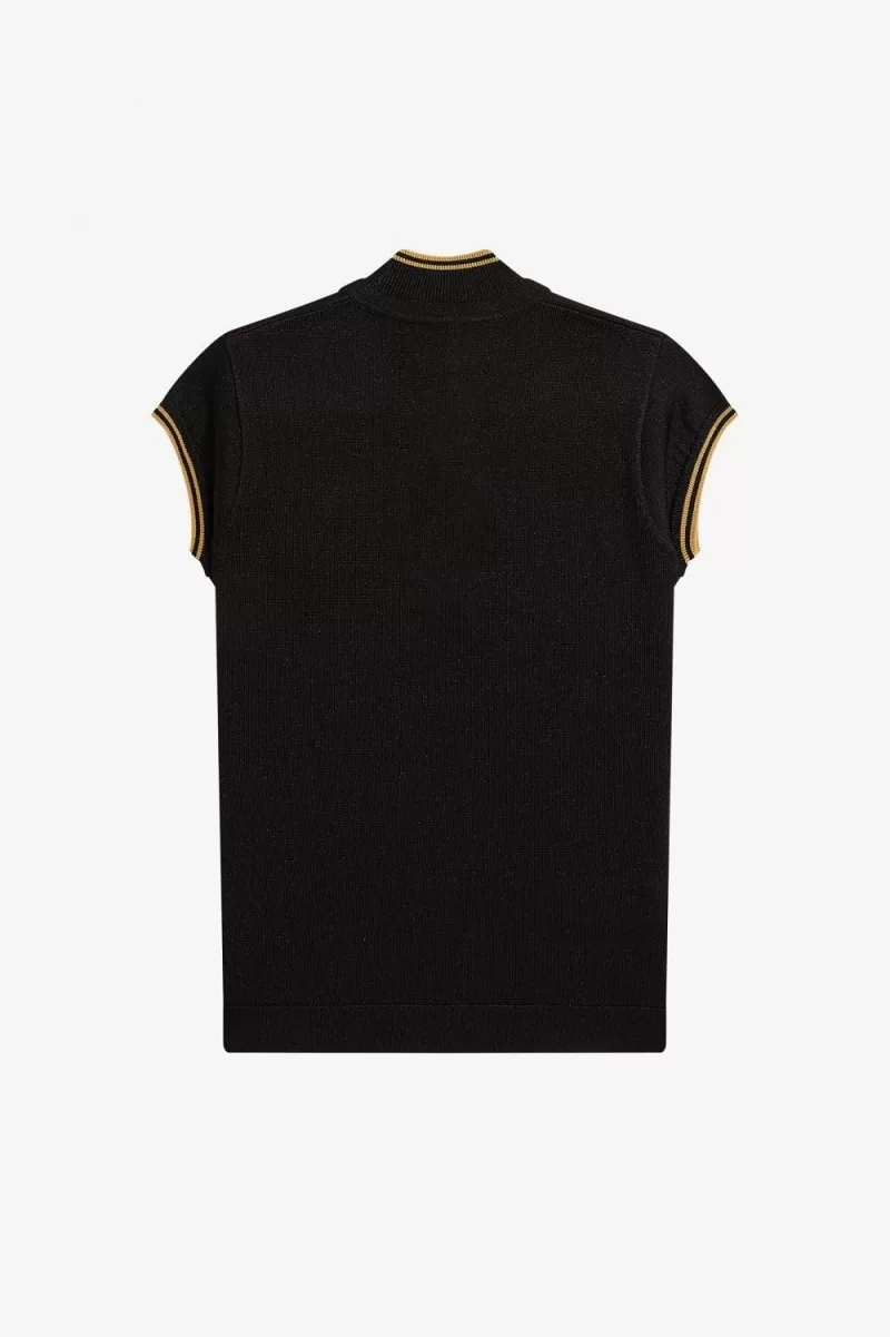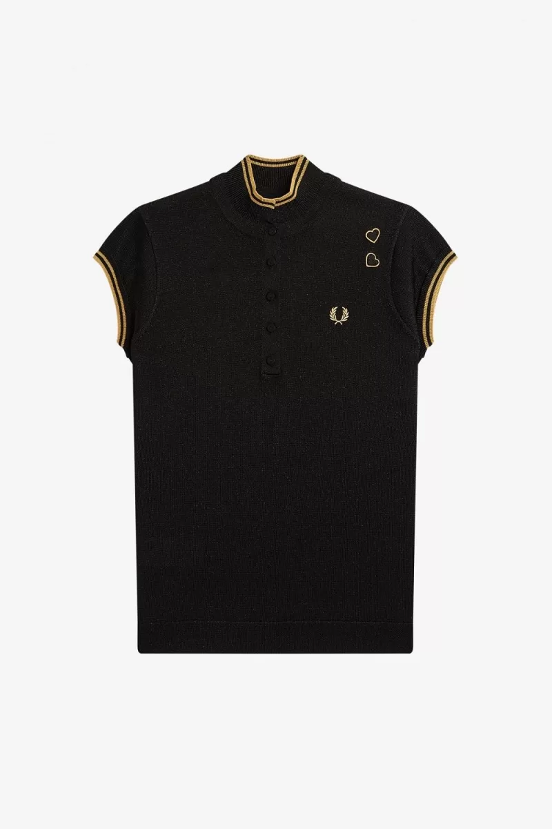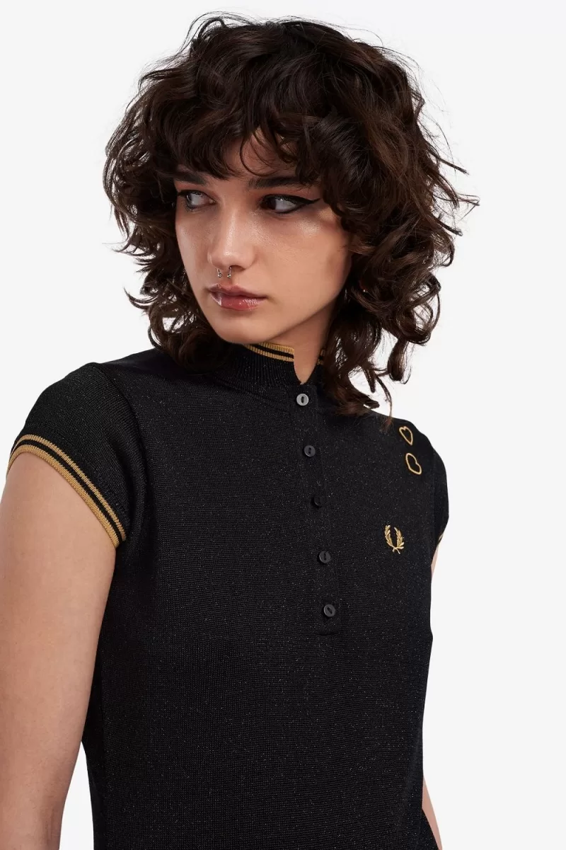 Fred Perry Metallic Knitted Women’s Polo Shirt Black LNBRH2768