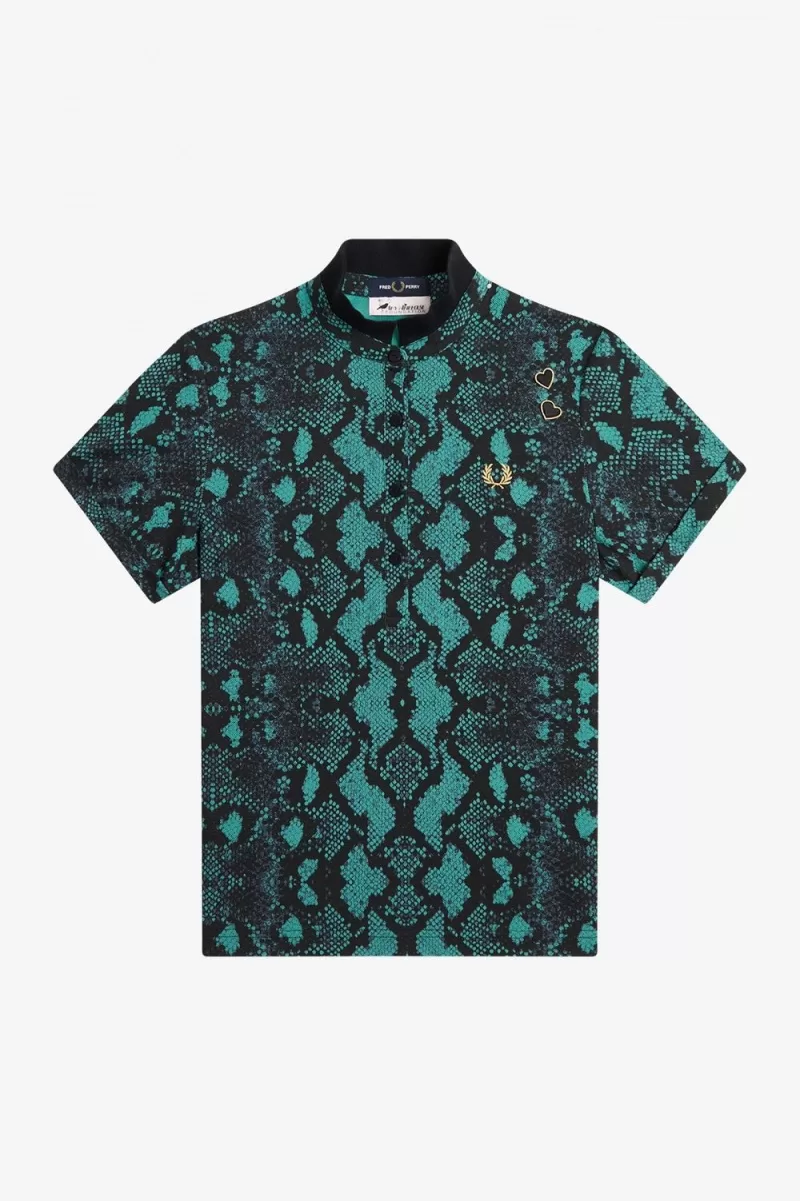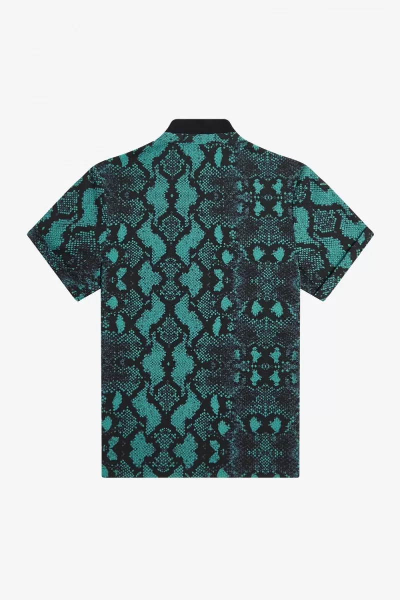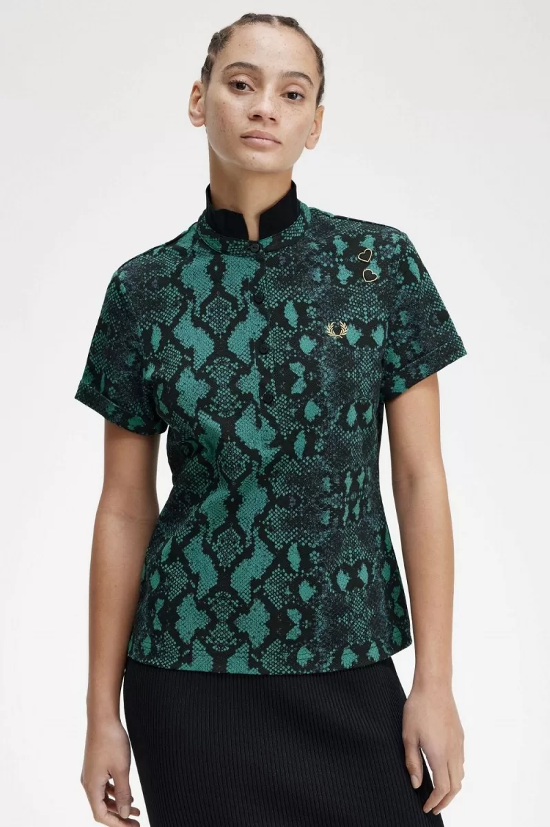 Fred Perry Snake Print Women’s Polo Shirt Deep Mint QXRLK4790
